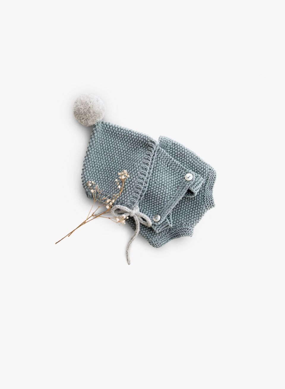 Knitted Baby Suit With a Bobble Hat